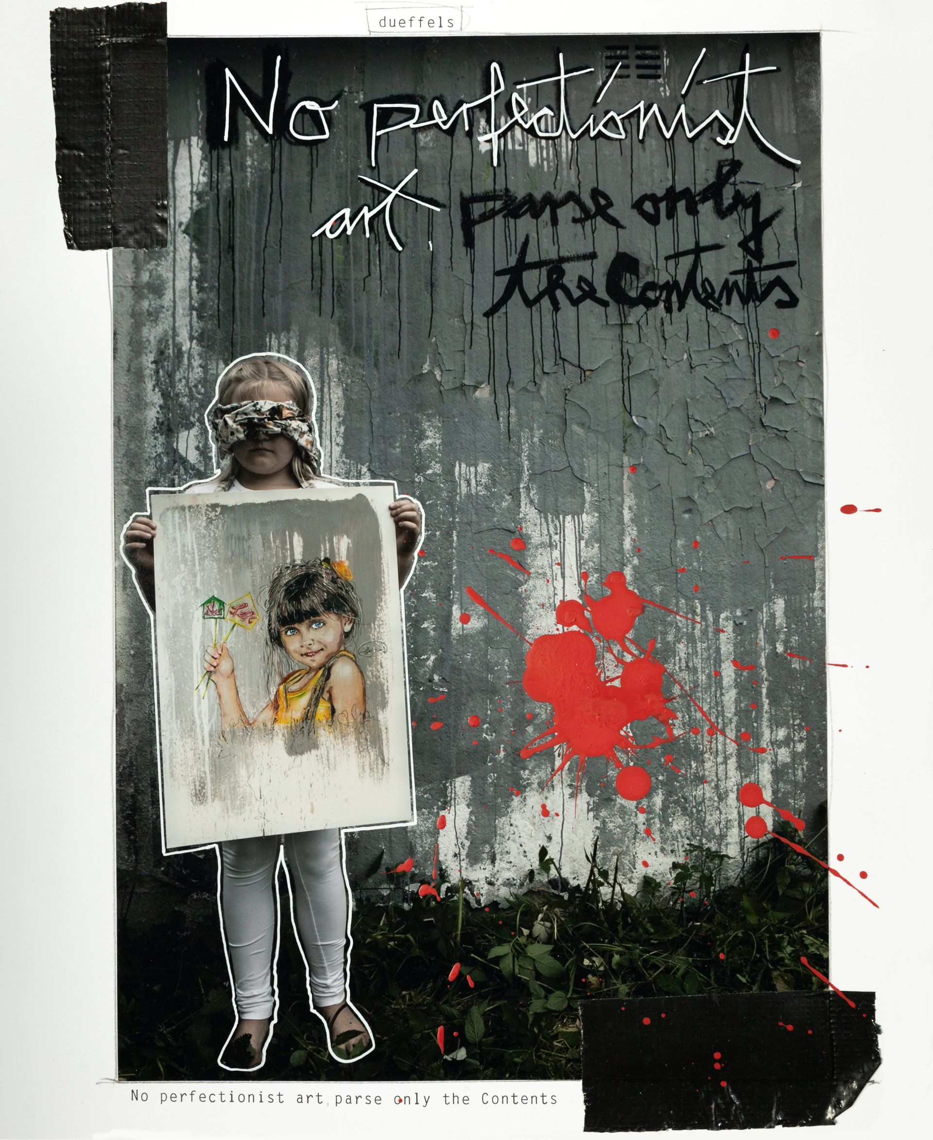 In the work "No Perfectionist Art", language and image enter into a symbiosis by forming a whole of text in which the two code systems complement each other. There is no claim to external perfection, but the focus is on conveying the content. Each of the three chapters is enclosed by a pro- and epilogue, in which the former invites and prepares the reader to receive the following six short stories and their associated paintings, while the latter encourages them to reflect on what they have grasped.